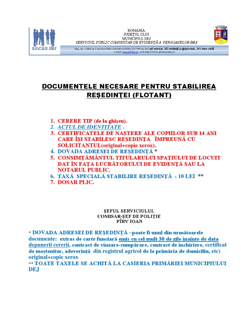 Ev Acte Necesare Pentru Stabilirea Resedintei