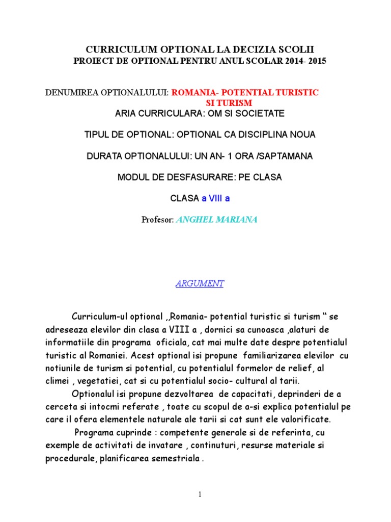 Curriculum Optional La Decizia Scolii Argument