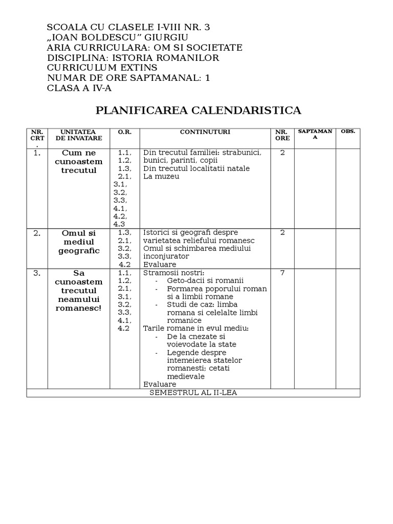 Planificare Istorie