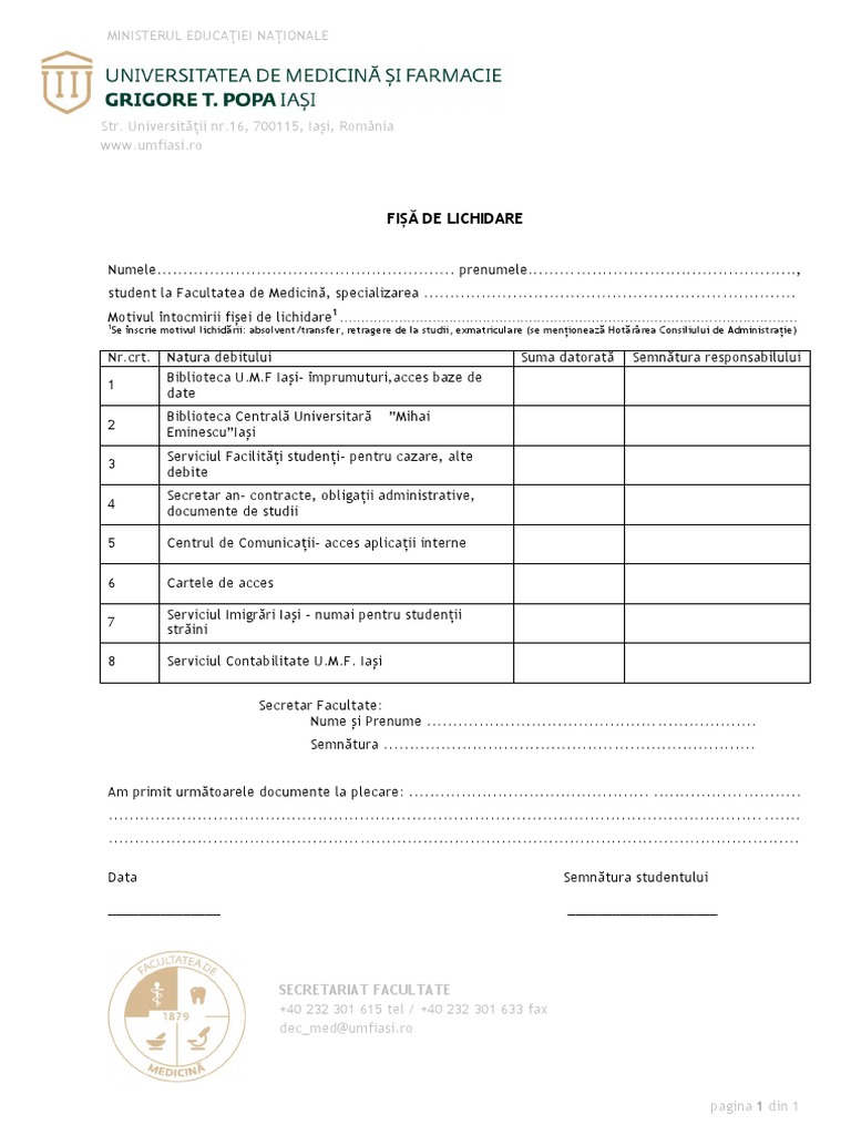 Fisa De Lichidare Facultatea De Medicina
