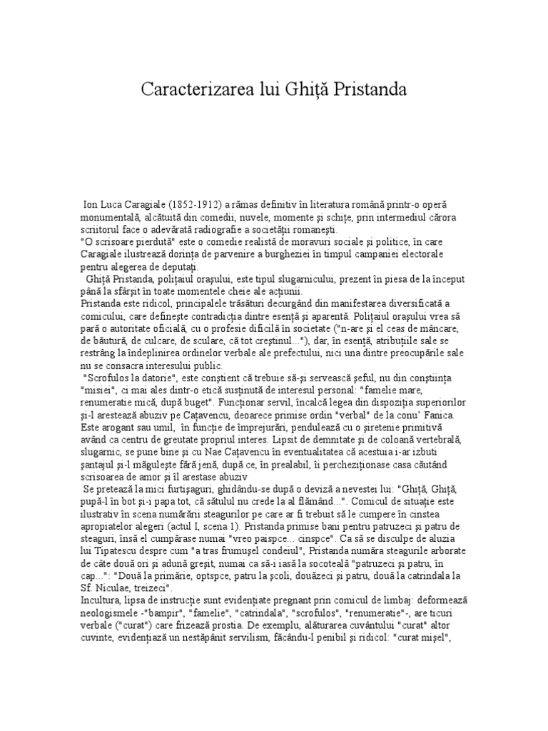 Caracterizare Caracterizarea Lui Ghita Pristanda 327161 Graduo