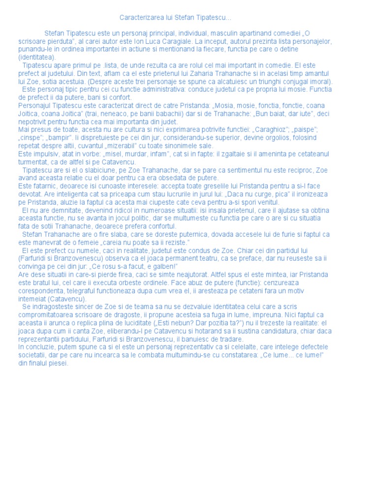 Zoe Trahanache Ghita Pristanda Nae Catavencu Caracterizarea Personajelor O Scrisoare Pierduta Tocilar Ro