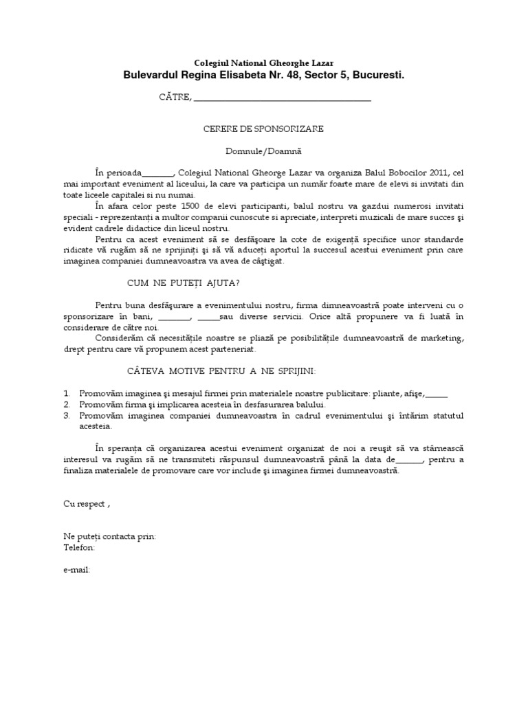 Cerere De Sponsorizare