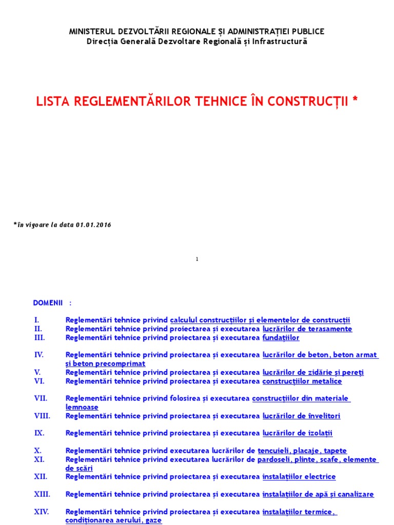 Lista Normative Construcții In Vigoare 2016